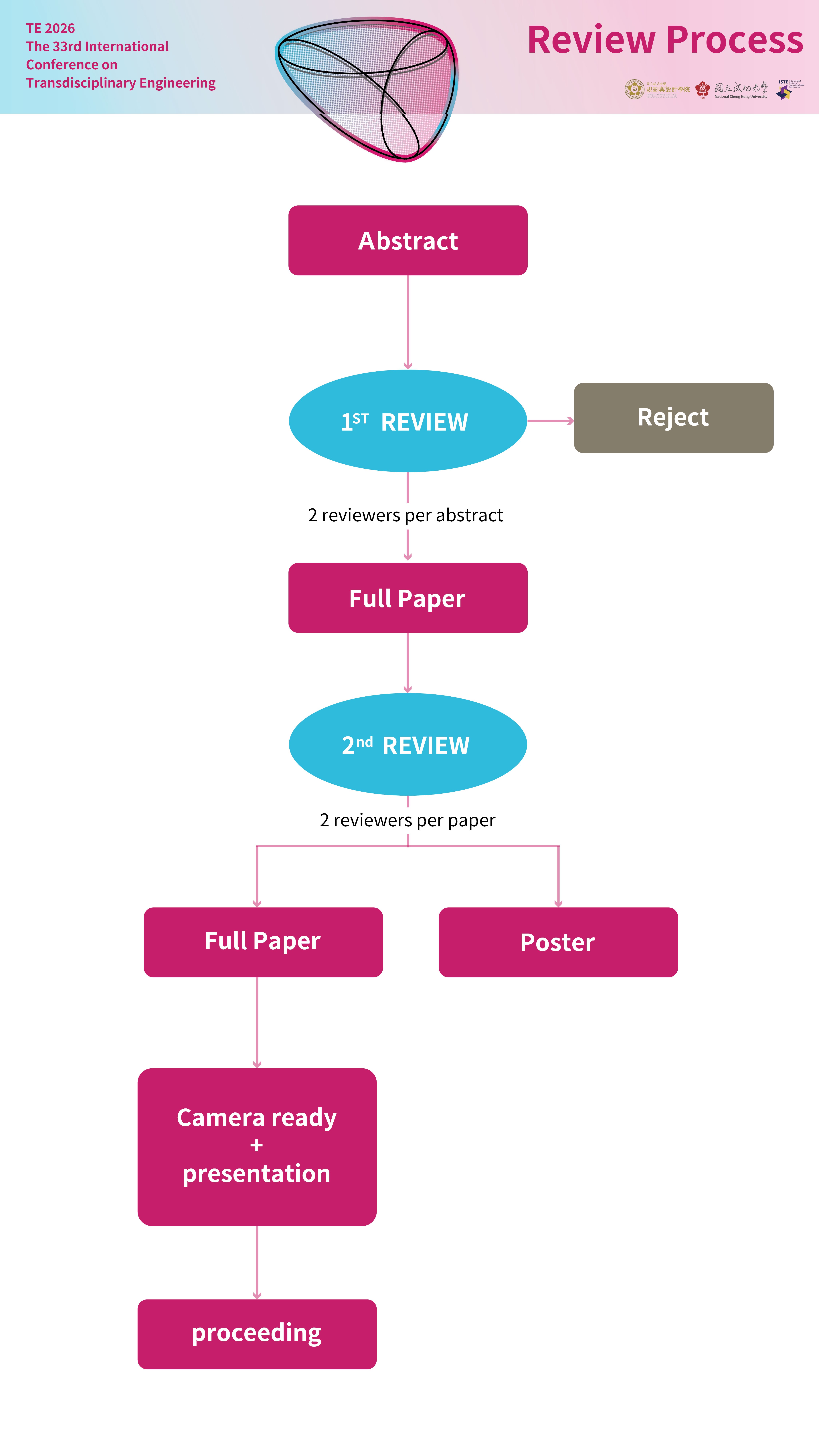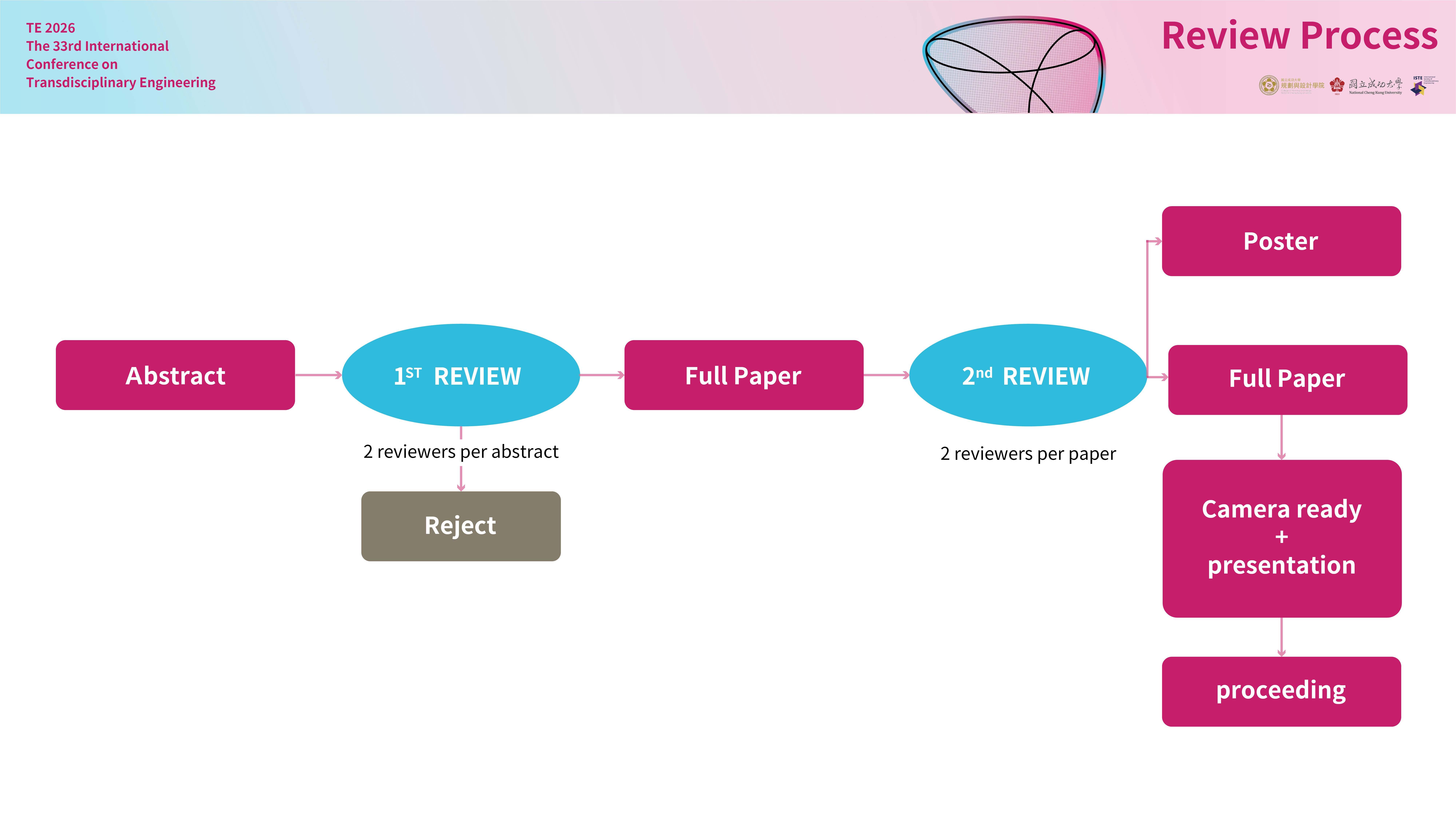 Each abstract receives a preliminary check by 2 meta reviewers to confirm alignment with Transdisciplinary Engineering (TE).